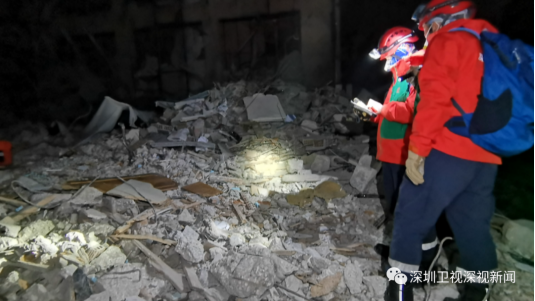 ▲深圳公益救援志愿者在土耳其灾区现场寻找幸存者 图源 / 深圳公益救援队